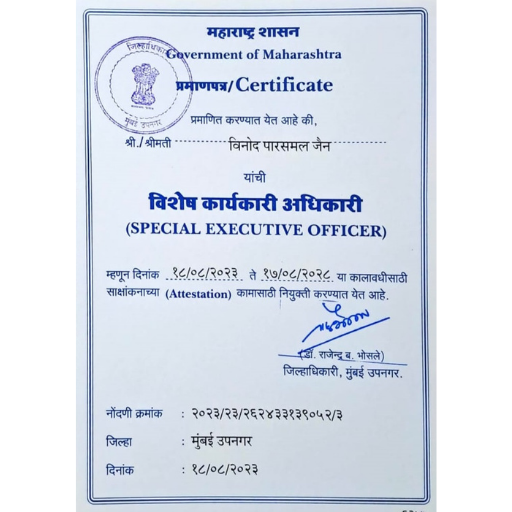 Vinod Parasmal Jain is a Special Executive Officer of the Government of Maharashtra.